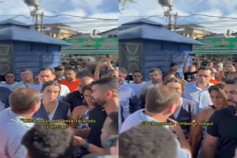 A subprefeita tomou à frente e respondeu. Foi então que Talita foi interrompida pelo prefeito, que disse: "Eu te mando embora daqui, hein".
