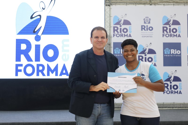 O projeto "Rio em Forma" tem mais de 700 núcleos e tem como objetivo proporcionar saúde, esporte e lazer de forma gratuita em todos os bairros da cidade, beneficiando mais de 60 mil alunos. Oferece uma ampla variedade de modalidades esportivas, como futebol, basquete, ginástica, zumba, funcional, surfe, jiu-jitsu, judô, entre outras, com aulas ministradas em locais públicos, como praças, parques, praias e vilas olímpicas.