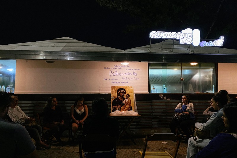 O quiosque na orla da praia promove uma missa em prol de um ambiente de paz na região