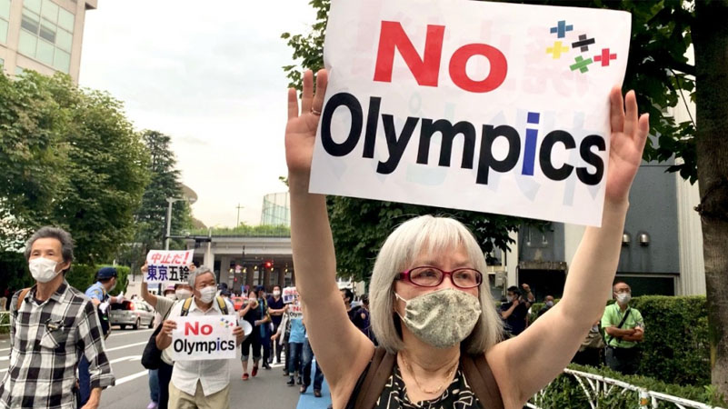 A oposição aos Jogos Olímpicos no país vem crescendo. Segundo a última pesquisa divulgada pela agência Kyodo, 86% dos japoneses são a favor de que a Olimpíada seja adiada pela segunda vez ou cancelada. Outros 40% pedem que o evento seja realizado sem público.