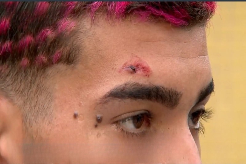 Ricardo Silva, de 20 anos, feriu o rosto ao ser empurrado pelo agressor, em condomínio no Recreio dos Bandeirantes