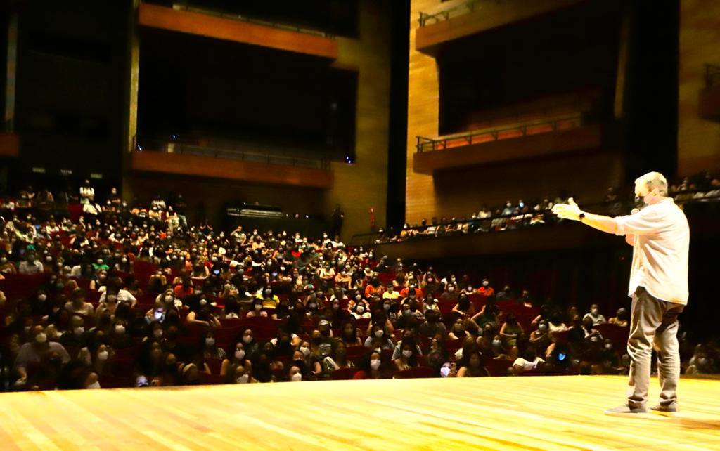 O prefeito do Rio, Eduardo Paes, e o secretário de Educação, Renan Ferreirinha, participaram da cerimônia de boas-vindas para os mil novos professores que agora fazem parte da Rede Municipal de Ensino. O encontro foi realizado nesta quarta-feira (01/12), na Cidade das Artes, na Barra da Tijuca. Aprovados em concursos públicos realizados em 2016 e 2019, os servidores convocados vêm assumindo progressivamente os postos em salas de aula desde setembro.