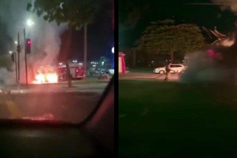 Enquanto a equipe combatia as chamas, o cilindro de gás natural do veículo explodiu