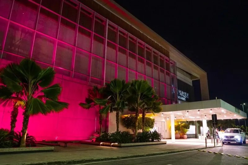 Durante a ação, a Fachada do shopping recebe iluminação especial