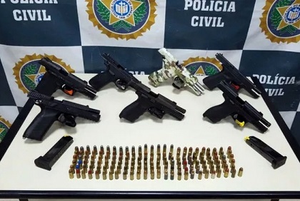 Com eles, foram encontrados um Renault Clio clonado, que havia sido roubado no Recreio dos Bandeirantes, e sete pistolas de uso restrito com grande quantidade de munição