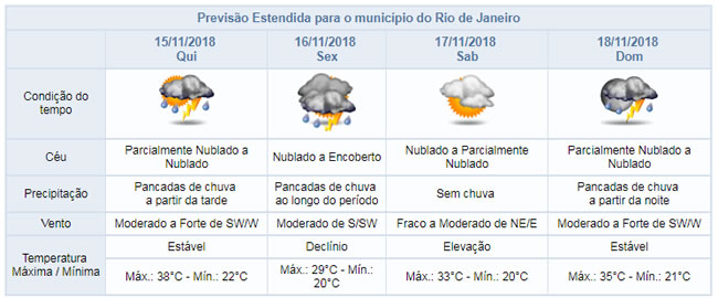 Previsões do Alerta Rio envolvem todo o município do Rio