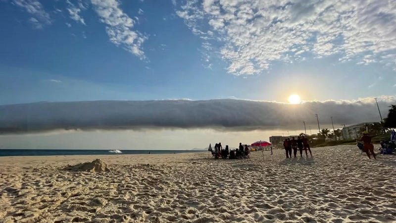 Frente fria trouxe nuvem rara para a Praia da Barra da Tijuca