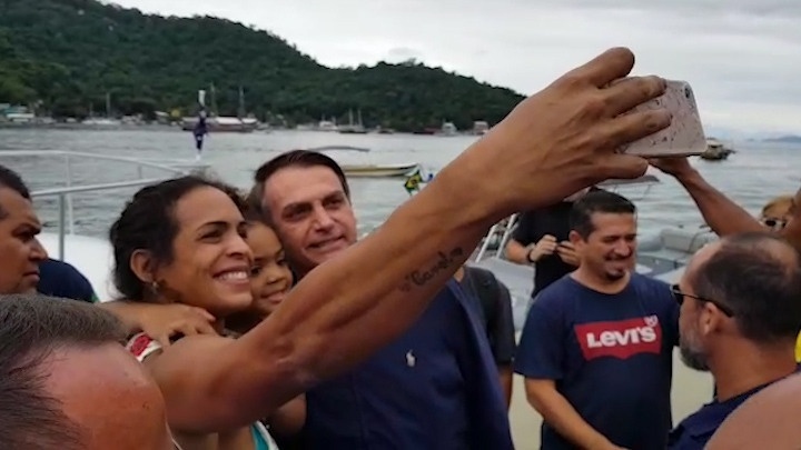 O presidente eleito foi acompanhado por policias federais em uma escolta com lanchas e um helicóptero