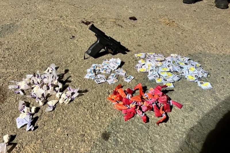 Foram apreendidos uma pistola calibre 9 mm, 205 sacolés de cocaína e munições