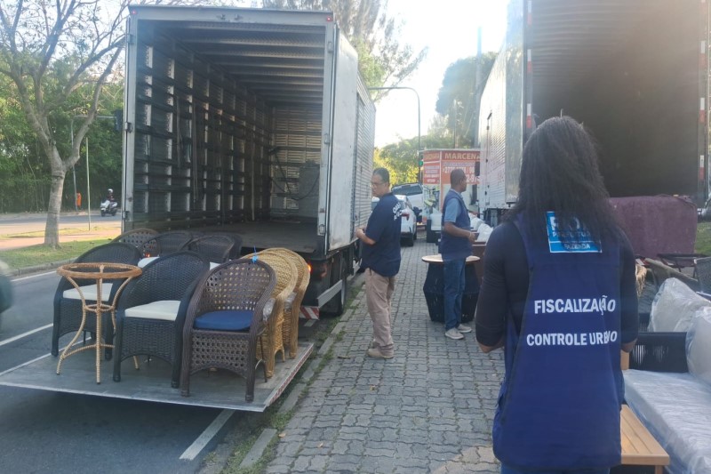 A Subprefeitura da Barra e a Secretaria de Ordem Pública apreenderam nesta terça-feira, dia 21, no Recreio dos Bandeirantes, mais de 10 móveis de um caminhão de uma loja que fazia uma espécie de show-room a céu aberto e insistia em ocupar o espaço público sem autorização.