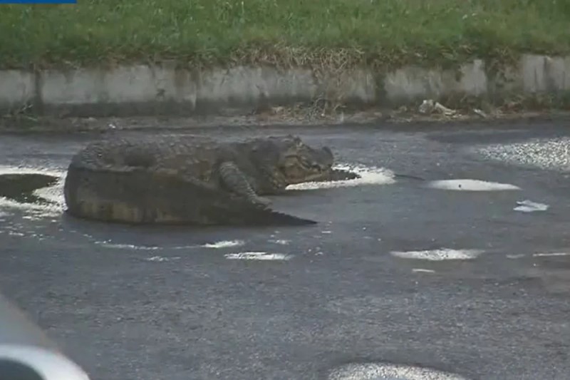 O Corpo de bombeiros fez a retirada do animal. Funcionamento do local não foi afetado