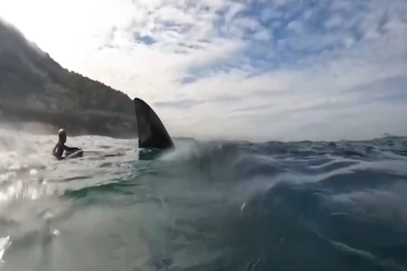 Um filhote e uma baleia adulta estavam nadando juntas