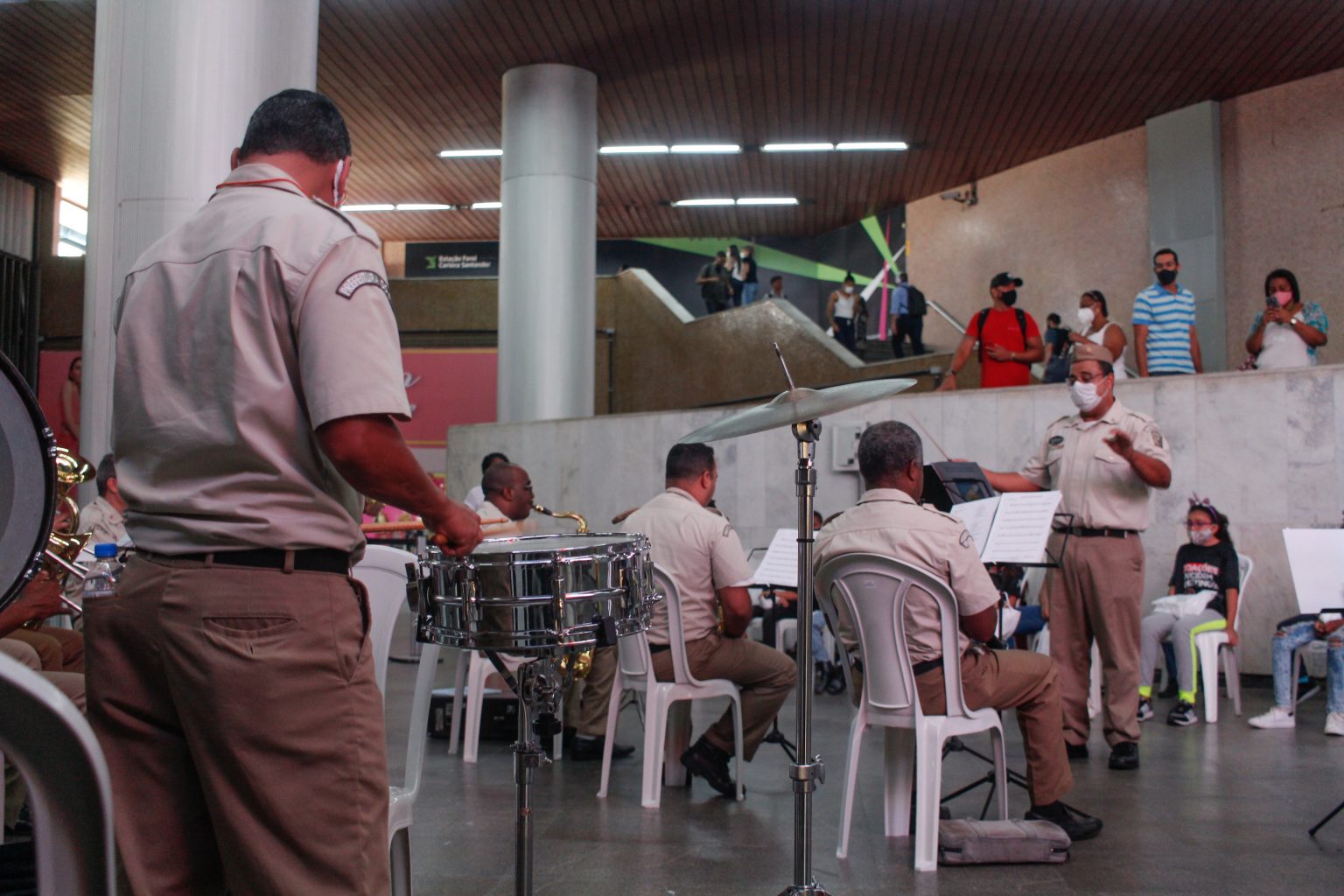 No clima das festas de fim de ano, a Banda Sinfônica de Música da Guarda Municipal do Rio de Janeiro (GM-Rio), em parceria com o MetrôRio, realizou um concerto de Natal, na manhã desta terça-feira (21/12), na estação Carioca, no Centro da cidade. Quem passou pelo local pode apreciar um repertório que incluiu músicas como: “Então é Natal”, de Simone; “Jingle Bell Rock”, de Bobby Helms; “Heal the World”, de Michael Jackson; “What a Wonderful World”, de Louis Armstrong; “Adeste Fideles”, de Nat King Cole; entre outras.