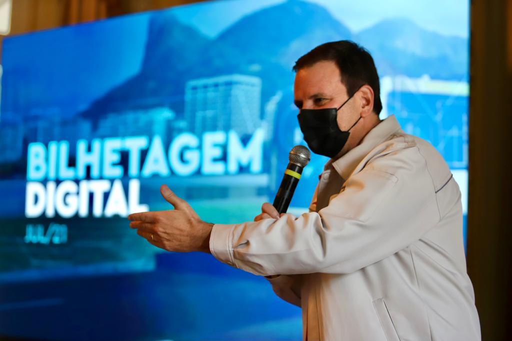 O prefeito do Rio, Eduardo Paes, e a secretária municipal de Transportes, Maína Celidonio, apresentaram nesta quarta-feira (21/07) o novo modelo de bilhetagem digital, no Palácio da Cidade, em Botafogo. O objetivo é garantir maior transparência financeira, planejamento com dados confiáveis e melhoria dos serviços das linhas de ônibus.