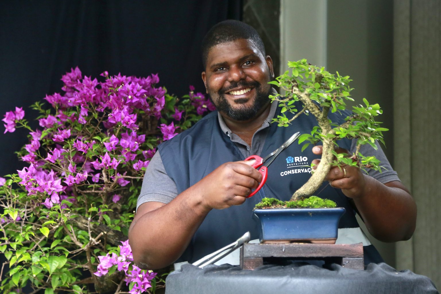 No trabalho, o engenheiro civil Alan Caetano, de 43 anos, lida com força bruta. Ele faz parte da Coordenadoria Técnica de Operações Especiais (Coope), vinculada à Secretaria de Conservação, cuja equipe supervisiona a utilização de equipamentos pesados como retroescavadeiras e escavadeiras hidráulicas, fundamentais na demolição de construções irregulares. Mas, nas horas de folga, o servidor, que também atua na parte de fiscalização e tem 14 anos de Prefeitura, busca na natureza uma forma de aliviar o estresse: pratica a arte do bonsai, técnica oriental que consiste em miniaturizar plantas.