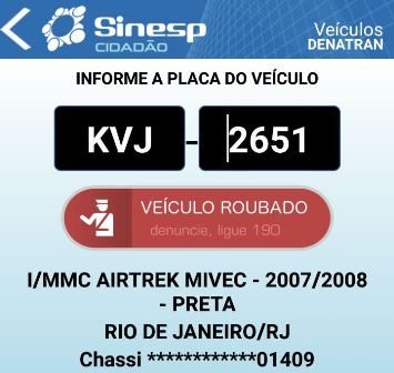 A guarnição foi até o local e constatou que o automóvel havia sido roubado na área da 42ª DP, conforme Registro de Ocorrência feito em 21 de setembro de 2017. O carro foi rebocado para depósito público.