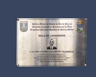A reunião do 31º Conselho Comunitário de Segurança (CCS) desta terça-feira (24/07) começou com uma homenagem. Com a presença de familiares, o cabo Leandro Nascimento Thasmerão, que era lotado no 31º BPM, teve seu nome eternizado na placa que fica na entrada da nova lavanderia do batalhão.
