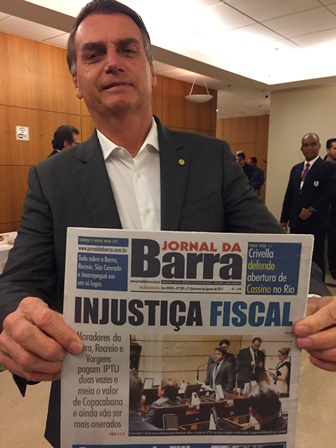 A Associação Comercial da Barra da Tijuca (AciBarra), em parceria com o Barra Prime Office, realizou no dia 28 de agosto um café da manhã e um debate para receber o deputado federal Jair Bolsonaro (PSC). Estiveram presentes na mesa, além de Bolsonaro e Ney Suassuna, presidente da AciBarra, Ricardo Magalhães, presidente do Conselho Comunitário de Segurança, e Marcus Neves, delegado da 16 DP.