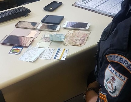 Ainda nesta tarde, outra guarnição foi acionada para conter um furto no modal Barra Shopping do BRT. O indivíduo teria sido detido por populares. Com ele, estavam quatro celulares, dois bilhetes únicos, 45 pesos argentinos e 2 mil pesos colombianos.