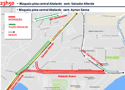 Após 23h30, quem vier da Salvador Allende, não conseguirá acessar a Avenida Abelardo Bueno em direção à Avenida Ayrton Senna, para pegar a Linha Amarela. Deverá se deslocar pela Estrada dos Bandeirantes. A recomendação serve também para os moradores do Condomínio Minha Praia.