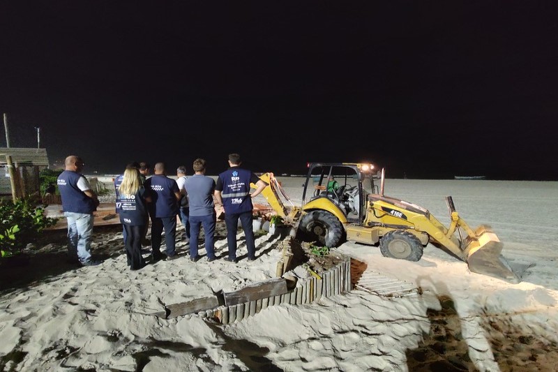 Estruturas ocupavam indevidamente área pública destinada a recuperação da vegetação de restinga e aos banhistas