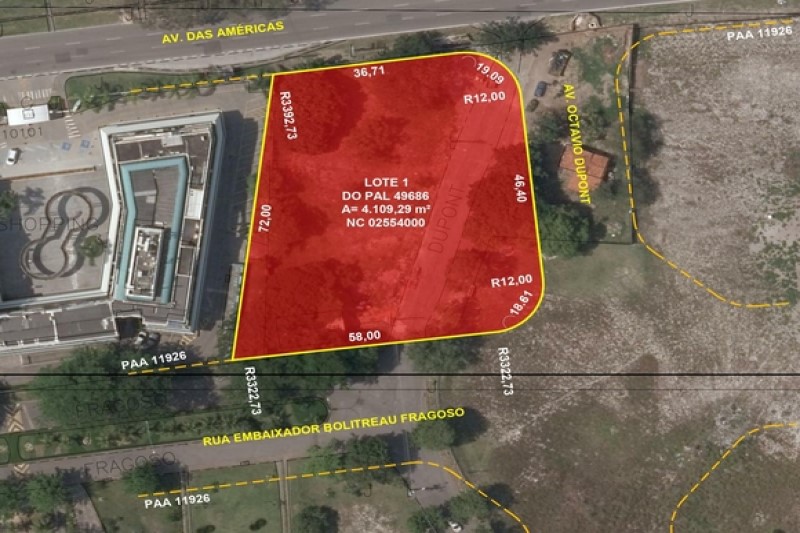 A área com mais de 4 mil m² fica próxima a Av. das Américas com lance mínimo de mais de 19 milhões de reais