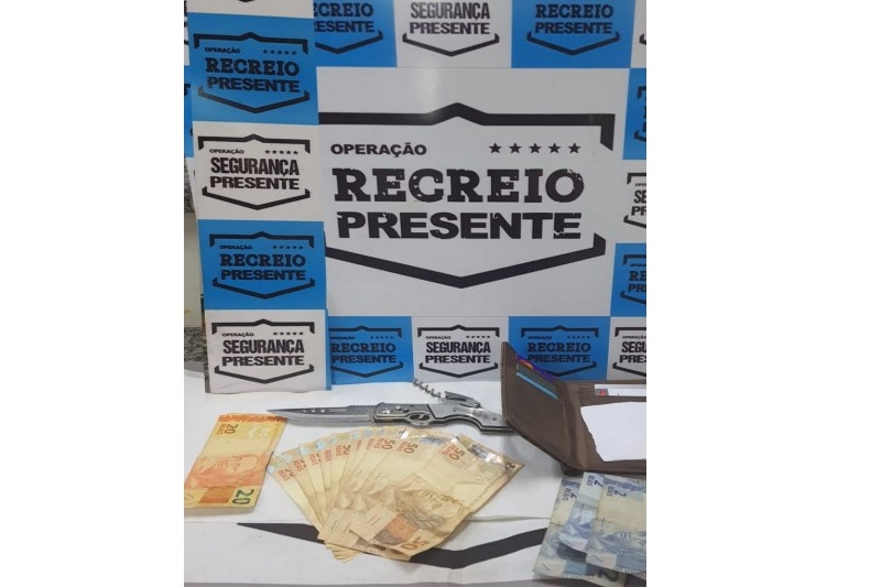 Faca, cartões e R$ 526 em espécie foram encontrados com o grupo