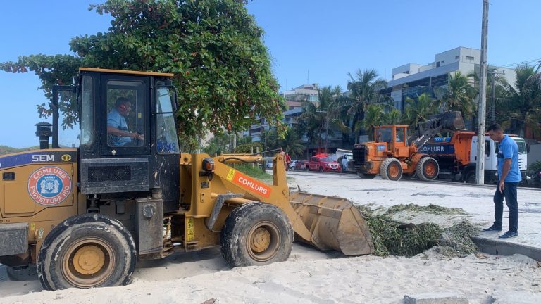 A Comlurb está trabalhando desde terça-feira (19/4) na remoção das gigogas que apareceram nas areias da praia da Barra da Tijuca, na Zona Oeste do Rio. Nesta quarta-feira (20/4), a Companhia atua em dois turnos com 55 garis.
