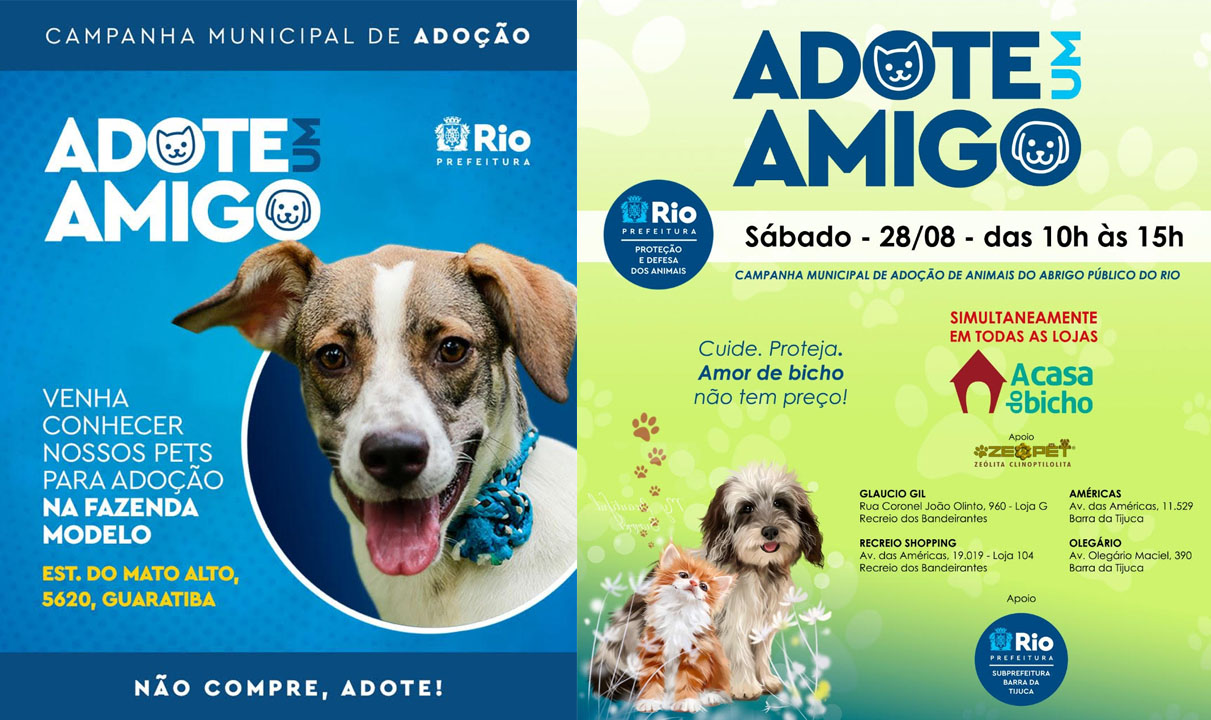 A SMPDA criou um canal direto para quem busca adotar um animal doméstico na Campanha Municipal de Adoção da Prefeitura do Rio, e resolveu lançar o “Disque Adoção” em quatro ações simultâneas promovidas pela Secretaria e entidades parceiras. Essa primeira etapa será realizada na Barra da Tijuca e no Recreio dos Bandeirantes em lojas da empresa “Casa do Bicho”, no dia 28 de agosto, para promover a Adoção Consciente de animais da Fazenda Modelo e conta com o apoio da Subprefeitura da Barra.