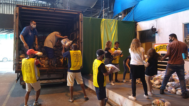 Na quarta-feira (2), Bees of Love distribui alimentos a famílias mais carentes da favela
