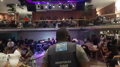 A equipe permaneceu até o esvaziamento total do estabelecimento, que foi multado e interditado pela Vigilância Sanitária