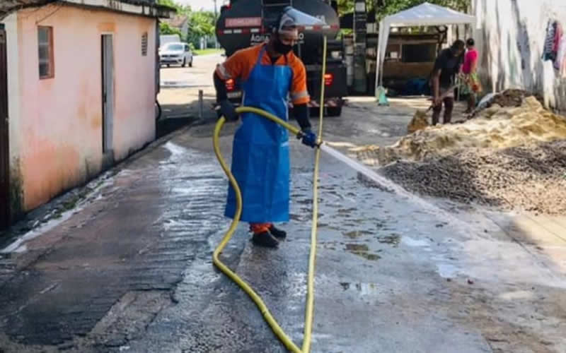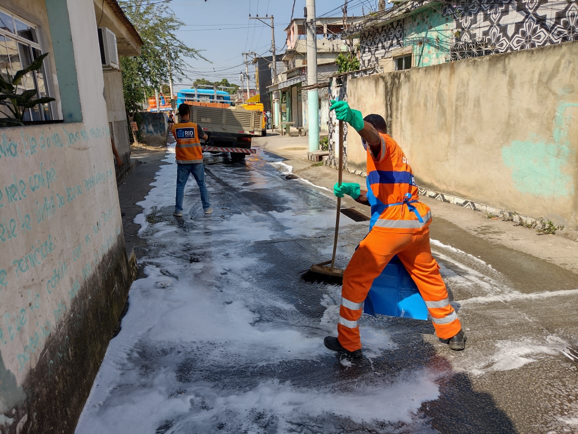 A ação é realizada com uma solução de hipoclorito e/ou detergente