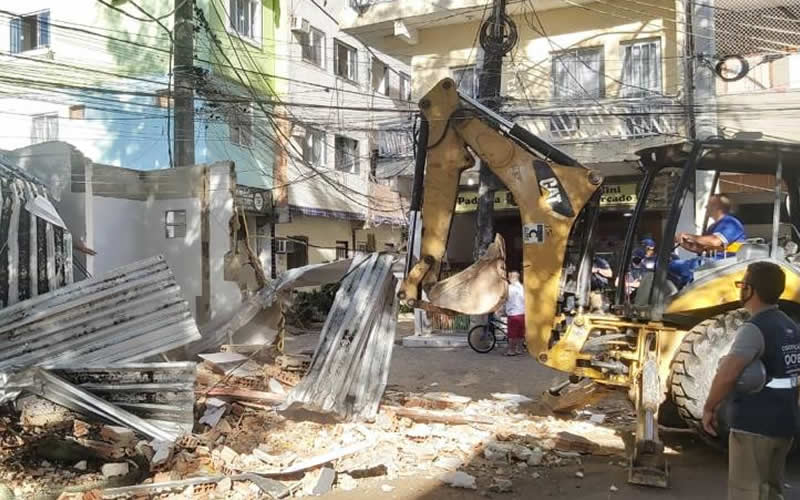Foram removidas 20 estruturas metálicas cobertas com telhas, destinadas a estacionamento e depósito, e 14 construções em alvenaria