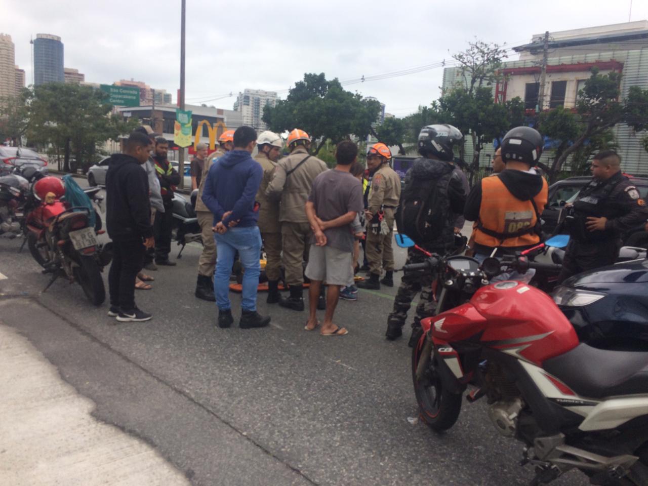 Acidente com motoqueiro atrapalha trânsito na Avenida das Américas